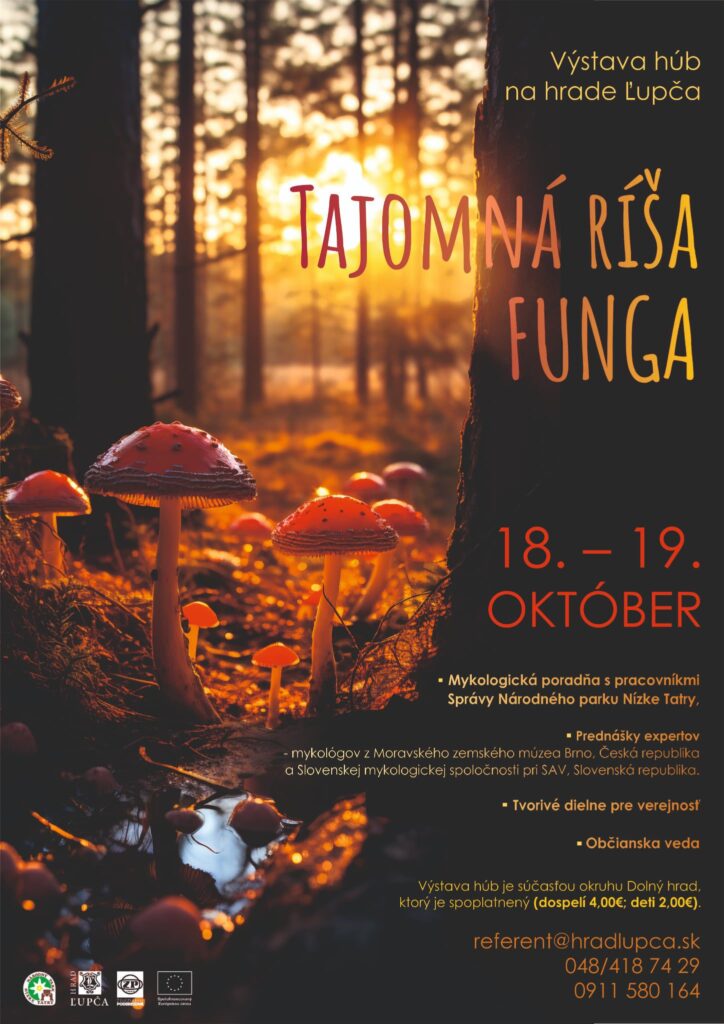Pozývame vás na dve mykologické vychádzky pre dospelú verejnosť, ktoré sa uskutočnia 16. – 17. októbra 2025 v Národnom parku Nízke Tatry ako súčasť aktivít ekoporadne pred pripravovanou Výstavou húb na Hrade Ľupča.