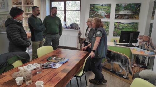 📍 Ďalšou zastávkou bolo Informačné centrum Stožec, kde mohli sledovať, ako českí kolegovia poskytujú informácie návštevníkom a organizujú environmentálnu výchovu.
